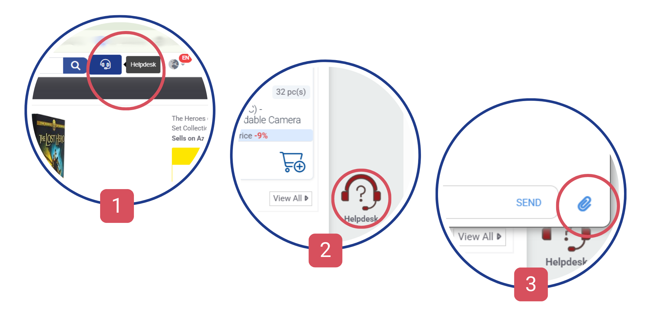 Il vous suffit de cliquer sur le bouton HelpDesk [1], situé à côté de la barre de recherche ou dans le coin inférieur droit, et de poser votre question.